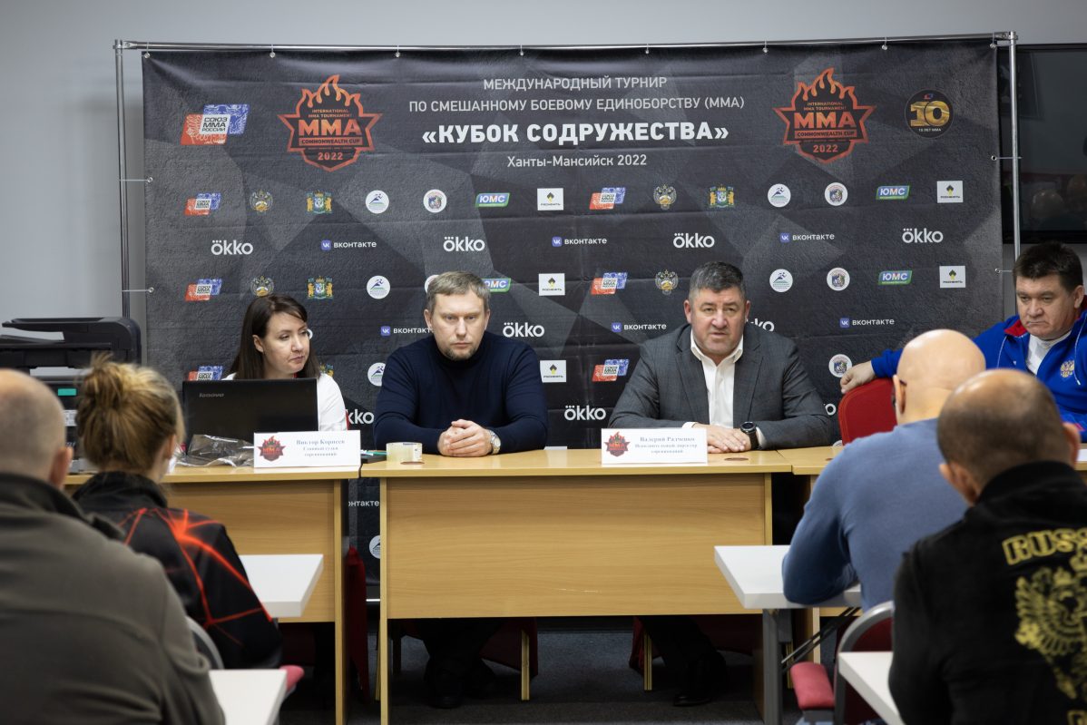 Сегодня вечером в гостинице «Олимпийская», где разместились спортсмены и представители команд, прошло совещание, на котором обсуждались актуальные вопросы в преддверии старта турнира. В качестве спикеров выступили: директор «ЮграМегаСпорт» Валерий Радченко, главный судья турнира Виктор Корнеев и начальник сборной России по смешанным единоборствам Владимир Дончак.