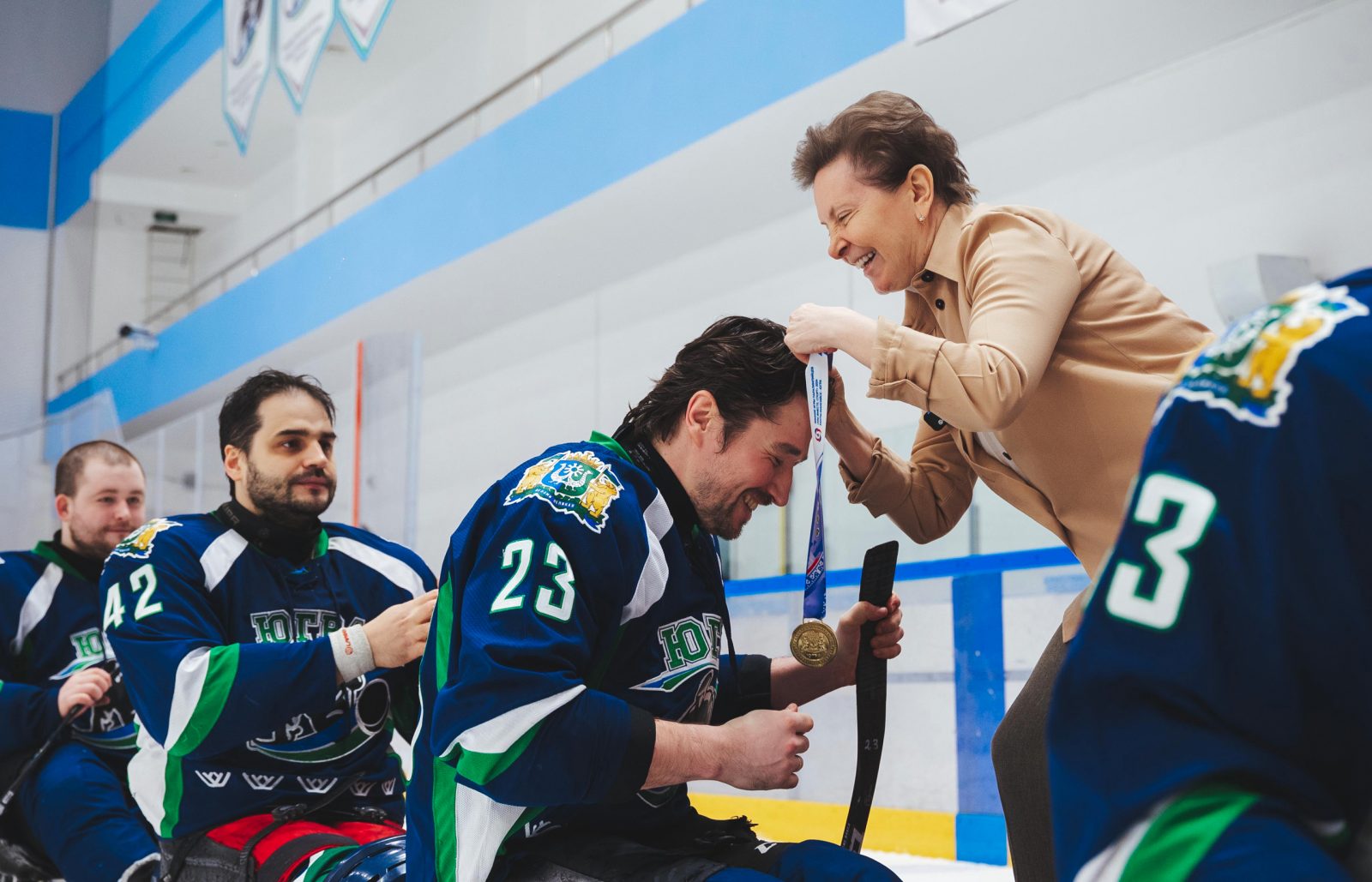 Гостей и участников торжественного события поприветствовала губернатор Югры Наталья Комарова. Она поздравила победителя и призеров следж-хоккейных матчей:
