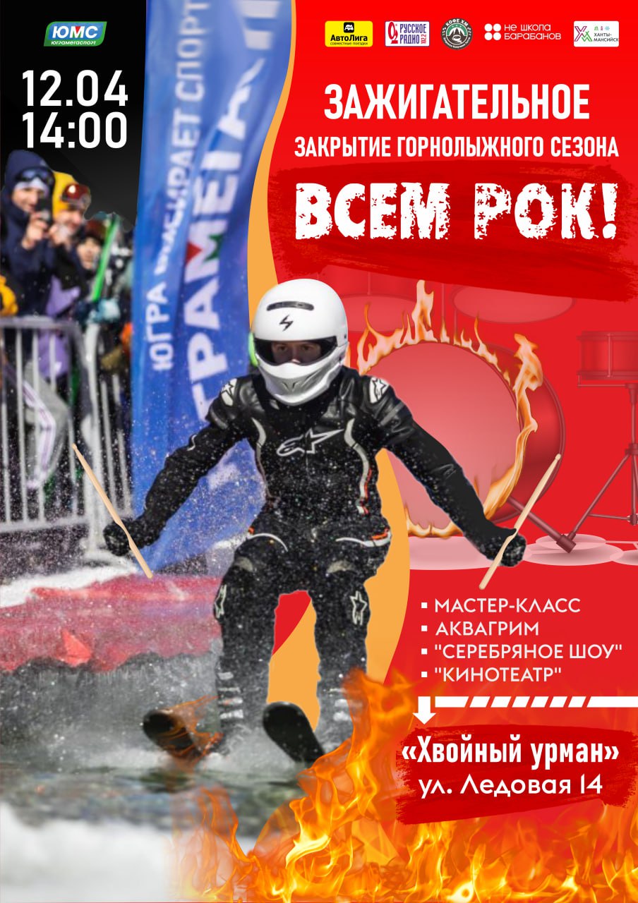 Зажигательное закрытие горнолыжного сезона пройдет в Ханты-Мансийске! 12 апреля в 14:00 ЮграМегаСпорт приглашает профессионалов и любителей горнолыжного спорта, сноуборда и просто тех, кто хочет насладиться праздничной атмосферой, весело провести время и закрыть зимний сезон.