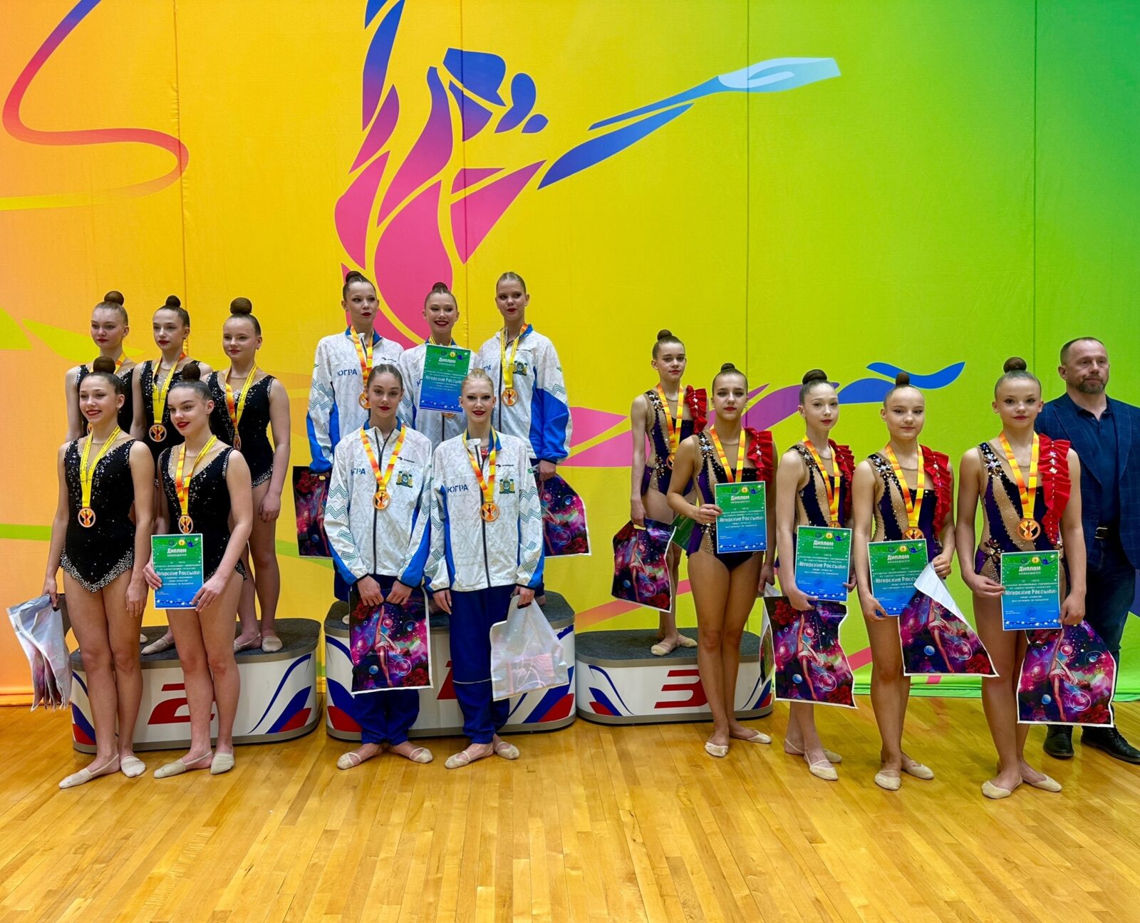 В дисциплине «групповое упражнение-многоборье» на вершину пьедестала взобрались воспитанницы секции ЮграМегаСпорт. Спортсменок подготовила тренер Анна Казанцева. Еще одна группа из Ханты-Мансийска завоевала серебро. А бронза досталась участницам из Сургута.