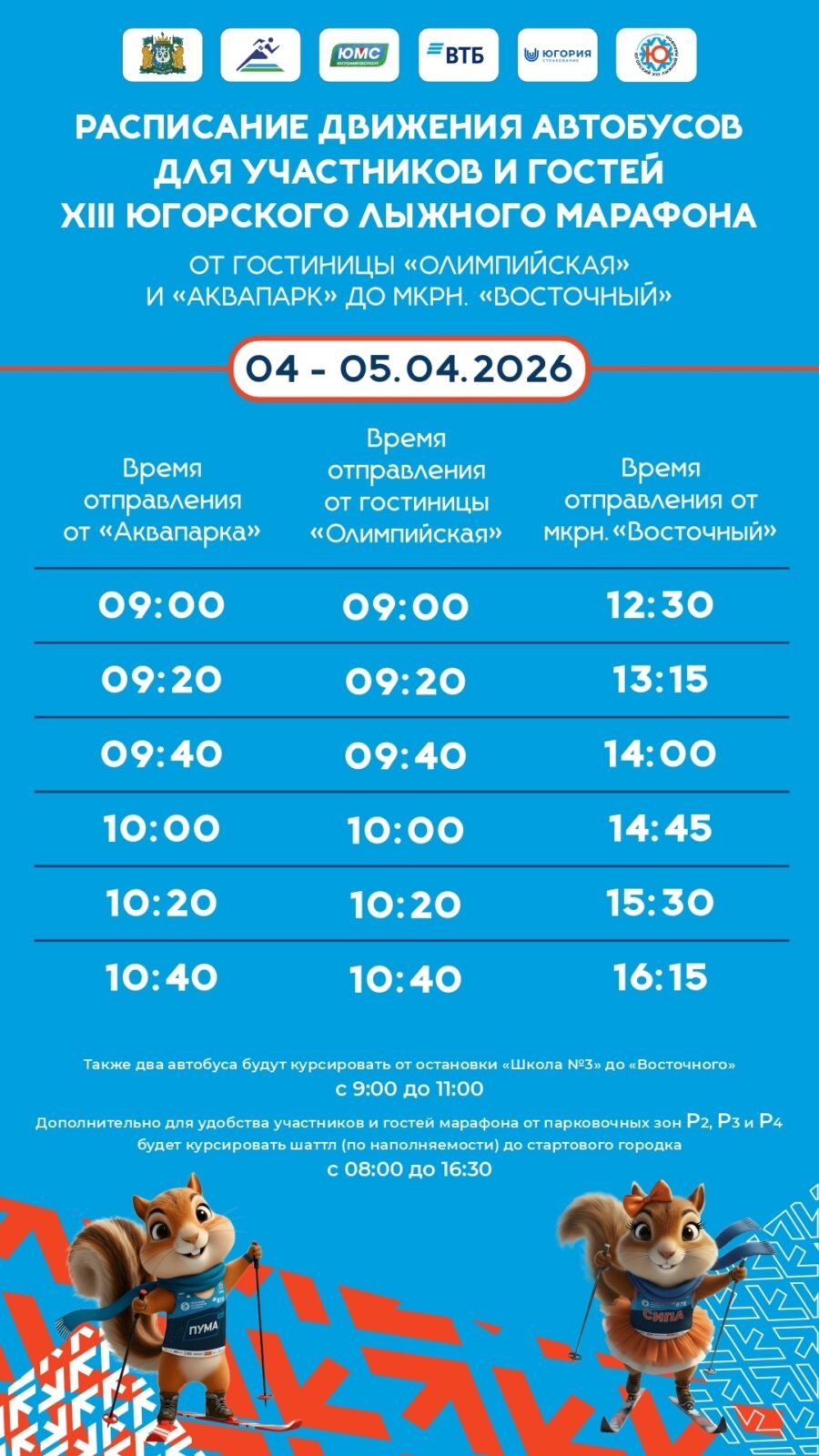 Друзья, мы позаботились о том, чтобы ваш путь к главному спортивному празднику Югры был максимально комфортным. Если вы планируете посетить XIII Югорский лыжный марафон, который пройдет 4 и 5 апреля, вы сможете добраться до места без лишних хлопот.👍