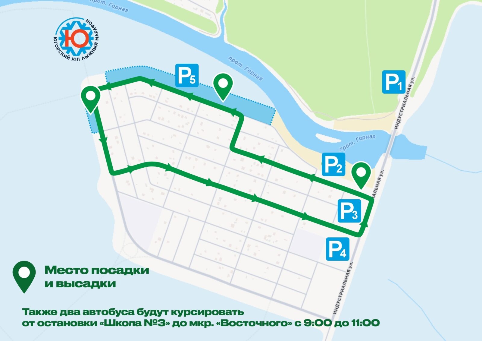 🚍Автобусы будут ждать вас у гостиницы «Олимпийская» и Аквапарка — здесь же вы можете оставить свой автомобиль на просторных стоянках и доехать на шаттле до микрорайона «Восточный» (конечные остановки указаны на схеме).